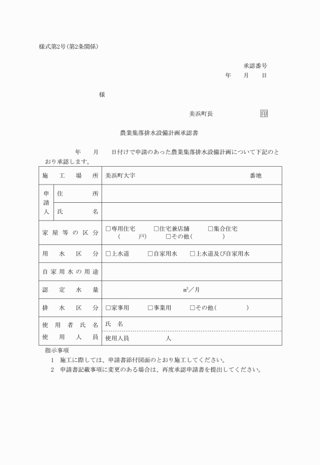 3 条例第17条第2項の規定により、処理施設について一部補助を受けようとする加入者は、美浜町農業集落排水処理施設設置補助金交付要綱(平成13年要綱第2号)に定める申請書類を町長に提出しなければならない。