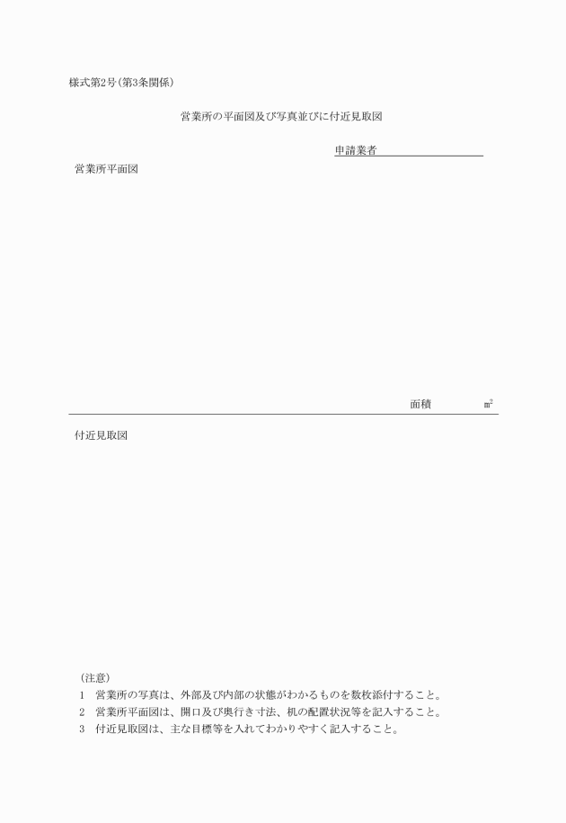 (3) 営業所の平面図及び写真並びに付近見取図(様式第2号)
