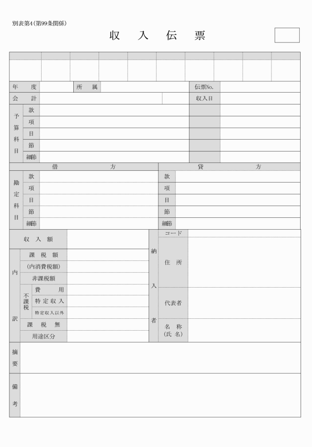 第23条 上下水道課長は、収入の収納を証する書類に基づいて収入伝票(一部現金の収納を含む取引について発行される振替伝票を含む。以下同じ。)を発行し、現金出納簿又は預金口座出納簿に記帳するとともに当該収入伝票により、収入の収納を証する書類を添付して管理者の決裁を受け、内訳簿のほか収入調定簿に記帳しなければならない。
