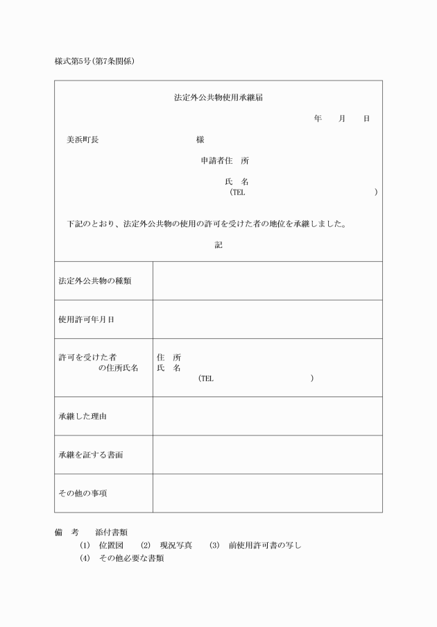 (7) 使用又は収益をしようとする法定外公共物について利害関係人が存する場合は、その同意書